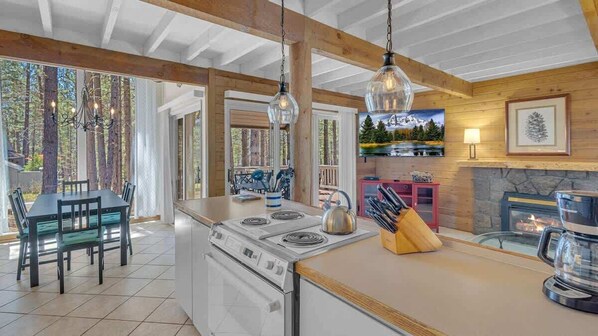 Perfect for families or small groups, this pet-friendly home comfortably sleeps up to 8 guests and features two separate living areas, giving everyone room to relax and unwind. Large windows throughout the home flood the space with natural light and bring the beauty of the outdoors in.