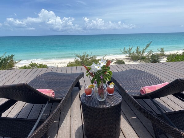 Luxury home, 4BR (and a loft with queen pull out), 2 1/2BA (including outside shower) 360 degree water views overlooking crystal clear Caribbean water and estuary behind the house that is a nursery for sea turtles, and endless wildlife. Take the kayak and paddleboards (included) and explore! Or relax with a drink on the huge lower deck or upper deck off of the 360 degree glass room on second floor, while gazing at the magnificent sunset and crystal clear water or gazing at the endless stars at night. The home is perched atop the bluff which offers exquisite views and the fine pink/white sand beach is just a few steps away. There is a restaurant/bar resort located within walking distance down the beach. (Call ahead for meal arrangements.) Find adventure all over the island - paddling to the blue holes, diving, snorkeling, bonefishing and deep sea fishing are just some of the activities offered on Cat Island. There is history abound here on Cat Island, including The Hermitage, which is located at the highest elevation in all the Bahamas. The Bat Cave is a fun place to also explore. The out island of Cat offers something for everyone - activities for those who like to be on the go, and serenity, beauty and privacy in a Secluded Paradise! Flights - From (FLL) - Makers Air direct to New Bight, Cat Island Airport (TBI). From Nassau, Bahamas NAS - Western Air direct to New Bight, Cat Island, Bahamas (TBI). RENTAL CARS. Yardies Car Rental & Taxi Service, Bennetts Harbor: 242 354 6076/6086