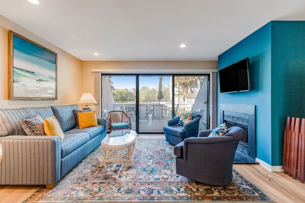 1st-floor Sea Colony Tennis condo with gym, tennis court, & pool