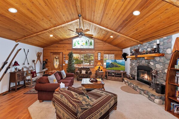 ✹ Open Floor Plan w/ Vaulted Pine Ceilings & Log Accents