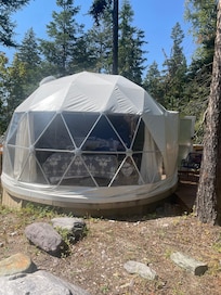 Great getaway! I wish we had more time to enjoy the space and the quiet. The host was very responsive, fast, kind and helpful. Easy self check-in process and clear instructions. The dome was very clean and comfortable and had a kitchenette, to our surprise! It also smelled quite nicely inside. We got in at night during a lightning storm and insane downpour so it was harder to find, but the instructions the host provided were very clear and helpful, once we referred to them. The road in is gravel but our small car made it no problem. We had some issues with the door when we just came in, and messaged the host. Got a reply in just 2 minutes. Turns out the lock was just asleep so we got in just fine and had no issues after that. Dome had decent wifi, too! Right in the forest, away from light pollution, with a great view of the stars. No one bothered us. Could not figure AC out