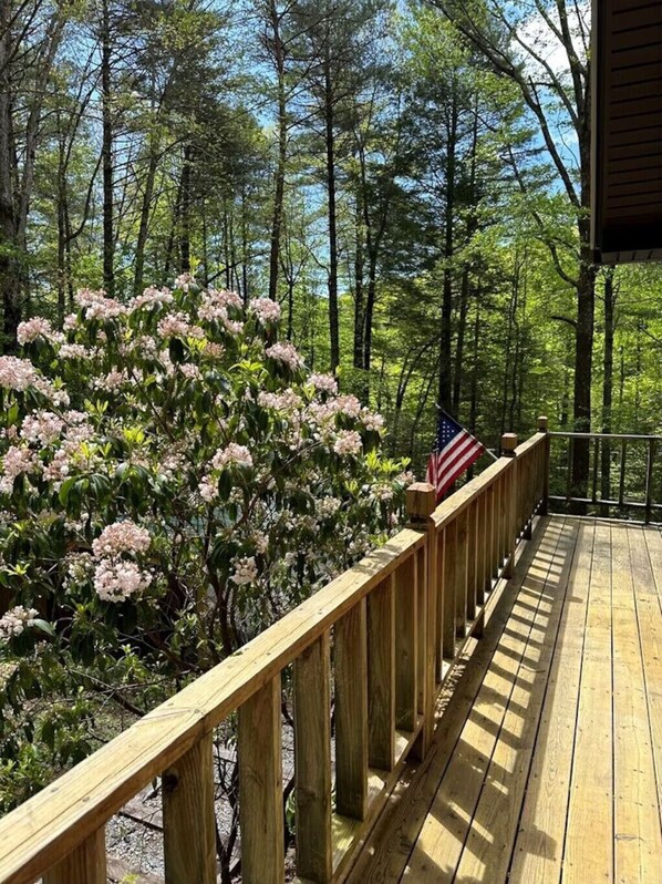 Bonnie is a beautiful cabin at a 2,700' elevation. It is a short drive or hike to Helton Creek Falls - a set of two cascading waterfalls, sliding down in tendrils through a beautiful, hemlock-filled creek valley. The trail to these gorgeous waterfalls from the parking area isn’t long - in fact, the trail’s extremely short distance qualifies it as more of a short walk in the woods. But this double waterfall’s beauty makes it a fantastic outdoor break and swimming hole!