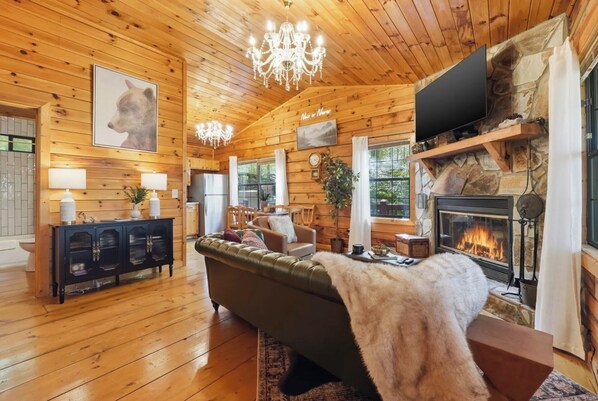 Tutte le camere di Pine Noir - Luxe Blue Ridge Cabin: Hot Tub, Outdoor Theater, Dogs OK vantano comodità come caminetti e l'aria condizionata, insieme a dotazioni come il Wi-Fi gratis e tavoli da pranzo.