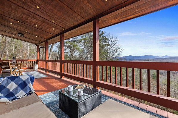⭐️ Cozy Winter Retreat in Blue Ridge! Stunning views-Hot tub-Arcade fun-Fire pit