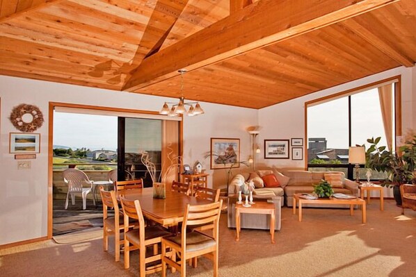 Boccabella is a 2 bedroom 2 bathroom pet friendly home with a $75 pet fee. Boccabella is perfect for two couples or a small family. This cozy 2 bedroom, 2 bath home is fully equipped with all the comforts of home. The kitchen has everything you could need and more, with a dishwasher, microwave and all of the small appliances you could want. There is an enclosed courtyard with a Charcoal BBQ, outdoor table & chairs, this home also has a balcony deck with lovely ocean views. And for your furry friend there is a fenced in gravel dog run.The open living room, dining room, and kitchen lay out complete this beach getaway. There is a woodstove, TV with Cable, DVD & VCR, wireless internet. Queen beds in each room, 1 bathroom with a shower and the 2nd bathroom has a shower-tub combo. 2 car garage and 15 minute walk to the beach via Pinnacle Gulch or Short Tail Gulch.