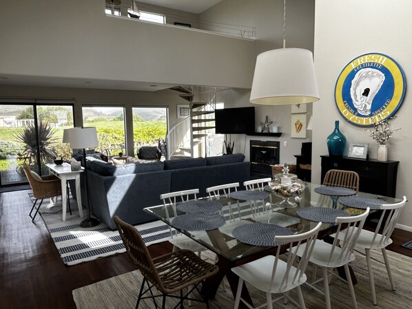 La nostra casa sulla spiaggia comprende una bella open space con vasca idromassaggio privata, camino a gas, grill a gas all'aperto, buca per il fuoco a gas all'aperto, lavatrice / asciugatrice, ampio parcheggio, vista sul porto dal patio sul retro e suoni rilassanti di Bodega Bay .
