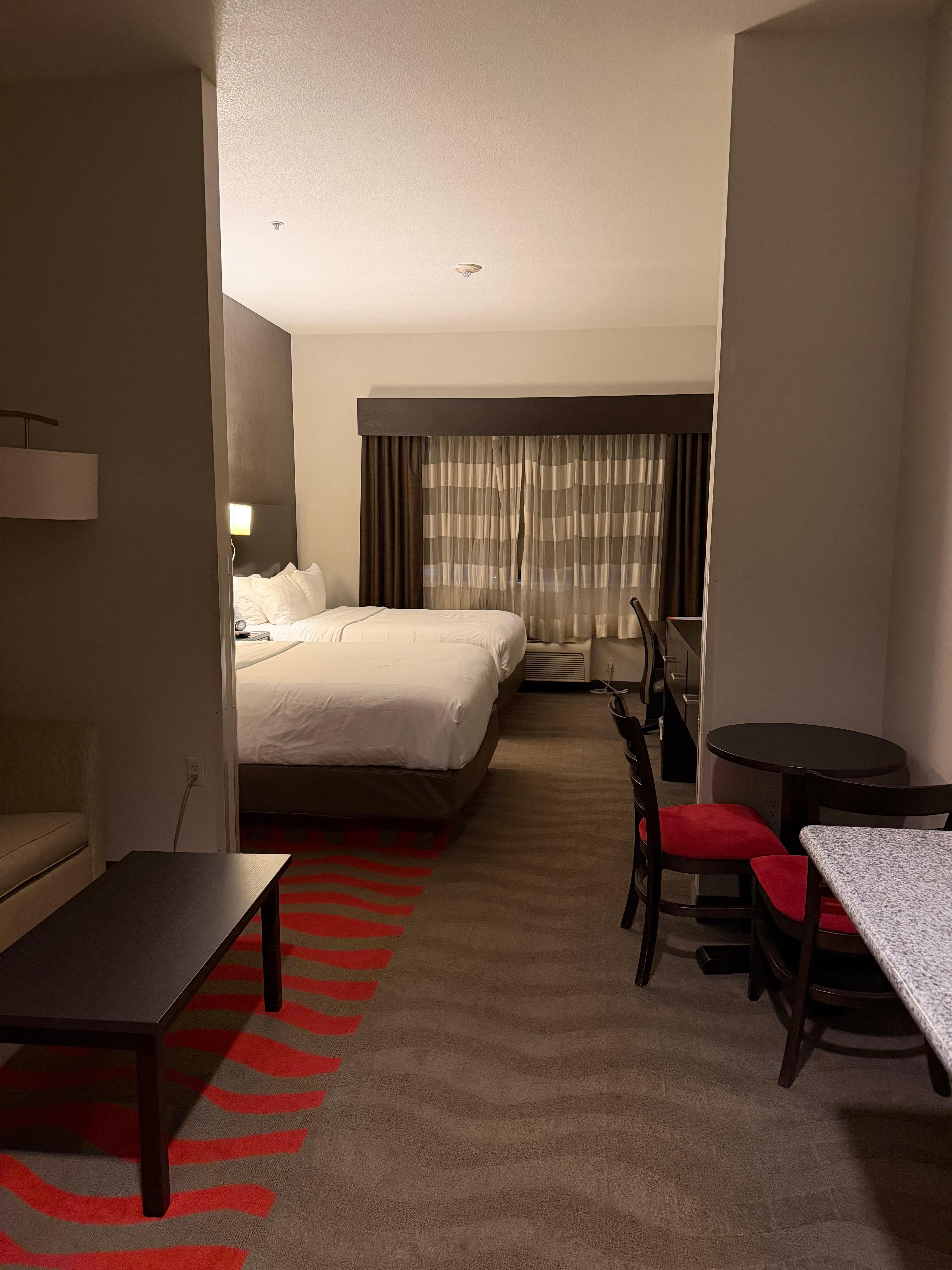 Our family has stayed here many times and as per usual our stay was top notch. Very friendly and helpful staff that make checking in simple and quick, amazing suite with everything we needed, hot and fresh continental breakfast with good tasting coffee, pool and hot tub are superb, very flexible with late checkout requests.