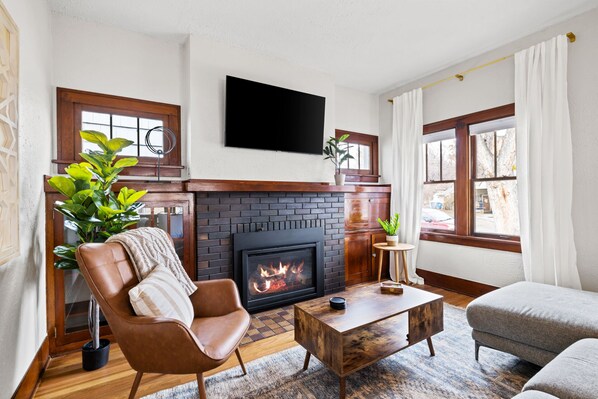This home has so much charm and appeal! It is on a very pretty tree-lined street in a quiet neighborhood. Inside is welcoming and cozy. The house has 1920’s era architecture with modern upgrades and conveniences. We spent our days with family who live in Boise so we weren’t “home” except in the evenings, but the living room was cozy, the beds were super comfy and the coffee was great! We would definitely stay here again!