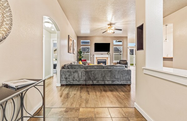ELENCO NUOVISSIMO! Recentemente aggiornato, privato + casa unica con soffitti alti, molta luce naturale + arredamento moderno. 6 posti letto - open space, 3 letto / 2 bagni con pavimenti in legno, sala giochi con biliardino e air hockey, camino, master con vasca e doccia, ampia cabina armadio. Camera matrimoniale con letto king size e lenzuola in morbido cotone, wifi ad alta velocità, cavo, smart TV a schermo piatto da 65 ". A pochi passi dalla piscina della comunità, dai parchi e altro! Ampio parcheggio gratuito! Rilassati nel nostro spazio tranquillo con tocchi speciali ovunque.