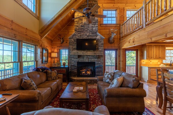 Beautifully and thoughtfully furnished, Good Medicine offers luxury accommodations throughout the entire home. The spacious main level boasts a beautiful, fully stocked kitchen, along with a stone island, dining area and a living room with vaulted ceilings and a stacked stone fireplace! Most of the furnishings are brand new and very high quality. The master bedroom is also on the main level and features a king bed and private bathroom with a tile shower, jetted tub, and double vanities!