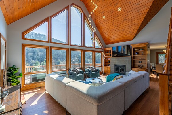 Your party is going to love the vaulted great room with floor to ceiling windows looking over the beautiful Mountainside. Gather around the gas log fire and share your favorite show or just relax on the large sectional and inviting chairs as you appreciate the view.