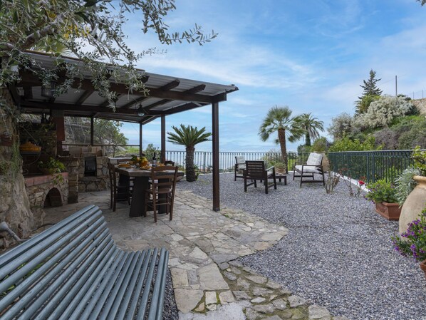 Casa bifamiliare molto confortevole, a schiera. A 700 m dal centro di Bordighera, a 4 km dal centro di Ospedaletti, a 9 km dal centro di Sanremo, sul pendio, a 450 m dal mare. Per uso privato: giardino terrazzato (recintato). Cambio biancheria (ulteriori extra). Cambio asciugamani (ulteriori extra). Pulizia dell'appartamento su richiesta (extra). Accesso 200 m di strada fino alla casa. Larghezza della strada d'accesso: 230 cm. Parcheggio presso la casa. Supermercato 600 m, ristorante, bar 400 m, noleggio biciclette 700 m, fermata bus 300 m, stazione ferroviaria "Bordighera" 2 km, spiaggia ciottolosa 450 m. Pista ciclabile 350 m.