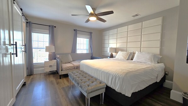 Your personal 4-digit entry code can access both the front and rear doors. You and your guests will have full access to all rooms in the entire house, except the basement, which is supplies for our cleaning staff only.