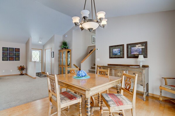 This large family home can sleep up to 12 guests with 4 bedrooms, 5 beds, and 3 bathrooms - plenty of space for everyone to feel comfortable and relaxed! The large, open floor plan gives the space an inviting and airy feeling.