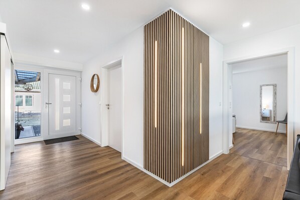 La Casa Luise si trova a Bramstedtlund, vicino al confine danese, e offre 90 mq per un massimo di 6 ospiti. Dispone di tre camere da letto: una con letto matrimoniale, una con due letti singoli e una con letto a castello per due persone. Il bagno è dotato di ampia doccia. La cucina è completamente attrezzata con frigorifero con congelatore, piano cottura, forno, lavastoviglie, tostapane, macchina da caffè e bollitore. A vostra disposizione anche Wi-Fi adatto allo streaming, TV satellitare, lavasciuga, seggiolone, lettino da viaggio per bambini e una postazione di lavoro. Tutti gli ambienti interni sono privi di barriere architettoniche.