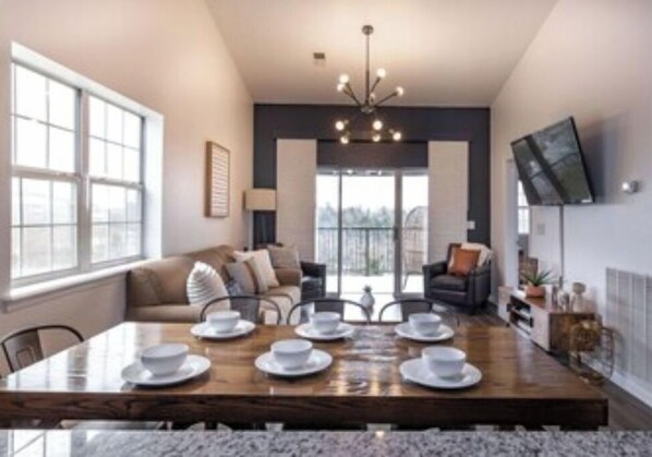 We were visiting for a national dance competition at the convention center and this was about 7 minutes away, very convenient. The condo was very modern and up to date. Loved sitting out on the balcony, it is as if you are in a tree house. Felt very safe with the gated entrance and security guards.
