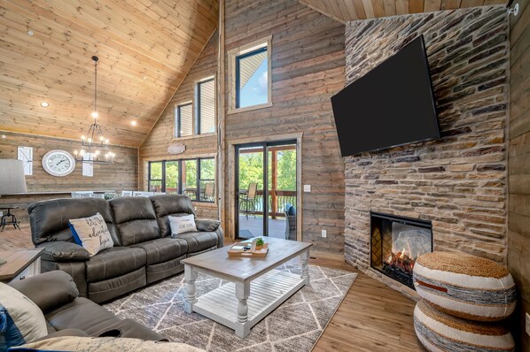 Start packing for an unforgettable Branson vacation at Lakefront Paradise! Located in a premiere resort on Indian Point development a short drive past Silver Dollar City on Indian Point, Lakefront Paradise is a spectacular 7 bedroom/7-bathroom home with a private garage, private hot tub and private fire pit. Enjoy all of the amenities of including a community pool (open Memorial Day to Labor Day) along with a lovely view and kayaks and that you can check out in the resort (Memorial Day through Labor Day). Boat slip comes with your rental for FREE. Bring your own boat or rent one at Indian Point Marina nearby. With a gentle walk to the water of only 100 yards, relaxation on land and by boat can be had in seconds.