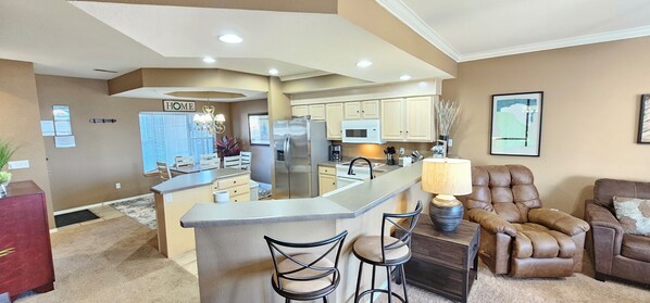 You won't be disappointed with this condo for your vacation and it is even more beautiful in person than it is in pictures. It was clean, had comfortable beds, and everything you need for your stay. It was the first time we didn't need to run out for those basic supplies (tp, pt, hand/dish soap, etc.) which was so nice, as well as extra things that aren't always included. We had all the dishes, skillets we needed to make breakfast before we headed out for the day. It was just the two of us so we had more than enough space but we got such a great deal, it was a no brainer to rent and so glad that we did. It was on the same level as parking, so no stairs if this are difficult for you. We spent a lot of time in the back sunroom area playing cards - was such a nice little extra space. We will definitely be back and hope to bring our family with us and would definitely stay here again!Places we enjoyed: Titanic Museum, Dolly Parton Stamped (especially the pre-show music), Silver Dollar City (don't miss the Marvel Cave and all the little shows and demonstrations), Mini-golf courses for some extra fun (once you pay the 15/pp fee, your next games are 7/pp - great deal!) We barely scratched the surface and can't wait to come back for more shows and explore the nearby parks.