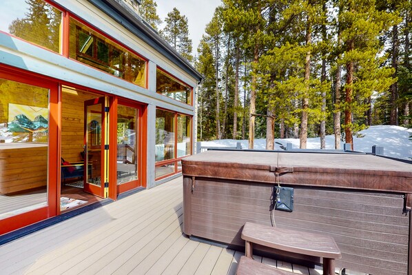Dog-friendly home with private hot tub, mtn views, deck, wood stove, fireplace