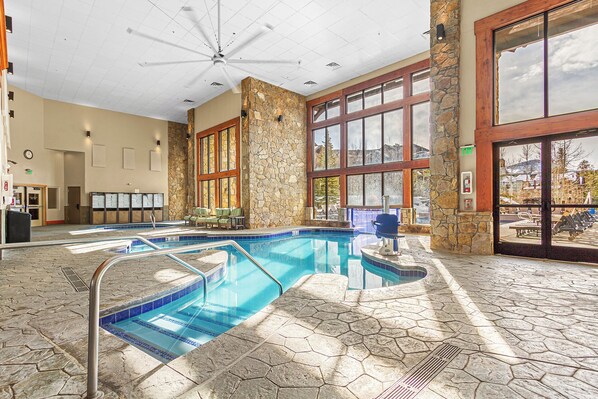 • Indoor/outdoor hot tubs and all-season heated pools with locker rooms, showers, and sundecks with lounge chairs