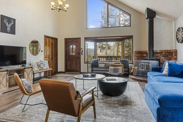 Escape to this bright and charming 5-bedroom home in North Breckenridge for the ultimate group getaway. Surrounded by trees and beautiful mountain views, the home features soaring windows, an open and social main living space, 2 living rooms, and a spacious deck with a hot tub. This home is perfect for relaxing after a busy day of exploring! Enjoy being close to tranquil nature and multiple trails and ski resorts, with downtown Breck and the town of Frisco a short drive away.