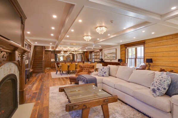 First of all, this entire house was amazing. We very comfortably slept 15 people (8 parents with 7 late teenage boys) in this house with room to spare. The house has four levels to spread out so we never felt like we were crowded at all. The main floor is very spacious and all appliances are high-end. They have thought of everything in this place! There are so many nice additions the owners provide that most VRBO rentals do not (ie. tons of Charmin toilet paper, extra paper towels, tissues, trash bags, dish soap, lots of spices in the spice rack, etc.). Having three sets of washers and dryers was so great to have with so many people. The ski locker room was very spacious and SO NICE to have to store all of our ski stuff. The boys absolutely loved the game room/theater in the basement, poker table and the sauna/steam rooms. The owners truly did a fantastic job including everything you could possibly need (and more) in this house! We all would definitely stay here again....and the history of the house is very interesting too!!!