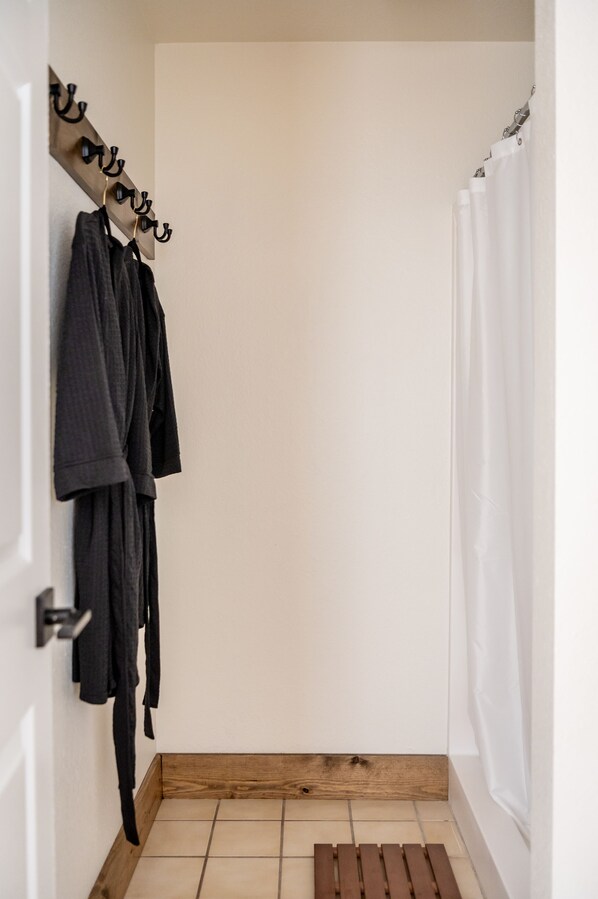 Your room is outfitted with a dining/workspace area, bathroom with full shower, and fully stocked closets with tools for meeting needs. This includes bathing, laundry, food prep, and cleaning. A mini-fridge, microwave, and coffee maker are also exclusively available to you in your closet area.