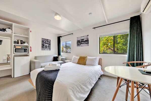 It was easy checking in since they send you all the details a few hours before you come. There is no reception, but staff are responsive when you sms them. The place is clean, but it would have been better if both bathrooms had provision of toiletries. The shampoo, conditioner and soap were only available to one of the bathrooms, so we just ended up using one when it would have been easier to be able to use both given that we are family. One of the toilets had something dripping from the roof so we had to put towel on the floor. It would have also been good if they can replace even just the bathroom mats daily as they get wet after showering. Parking is limited though; you have to try to be back to your hotel early so you can park. Good thing, you can just walk to shops and eateries at night. The cleaner before checking out was actually friendly and nice. That was the only in person encounter we had. We don't mind staying in the same hotel again next time.