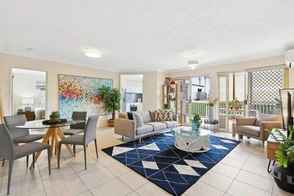 Enjoy exclusive access to this spacious apartment which includes two distinct bedrooms and bathrooms. The first bedroom offers two single beds, perfect for flexibility and comfort, while the second bedroom features a luxurious king-size bed for a restful night's sleep. The living area is beautifully bright and inviting, complemented by a deck that enhances relaxation and outdoor enjoyment. Ideal for guests seeking both comfort and convenience, with ample space to unwind in a vibrant setting near Brisbane River.