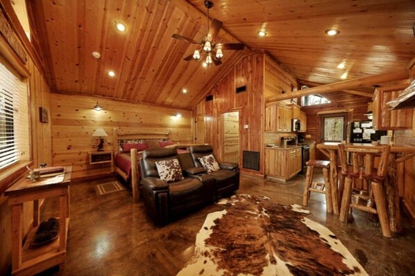 Fortunato Log è il luogo ideale per le coppie in luna di miele, e piccole famiglie. È dotato di un open space con soffitti in rilievo, un bel camino roccia e ricco di accenti di cedro in tutto. La cucina è completamente attrezzata con tutto il necessario per cucinare e intrattenere. Elettrodomestici in acciaio inox, ripiani in granito e la mano locale fatta mobili aggiungono un tocco di modernità per l'impostazione della foresta.