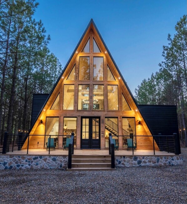 Discover the magic of a stunning modern A-frame cabin nestled in the beautiful Hochatown (also known as Broken Bow), OK. Set within 1.5 acres of majestic tall trees, this hidden gem offers unparalleled seclusion and privacy, making it a perfect escape from the hustle and bustle of daily life.