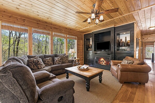 Once you arrive at A Blessing, you may never want to leave.  With sprawling covered porch and patio areas, there's plenty of space to enjoy the crisp mountain air, rain or shine.  Whether you'd like to sip your morning coffee while relaxing on the porch swing, grill a nice meal at the cabin, take a soothing dip in the hot tub, or roast a few smores in the fire pit, A Blessing is the place for you.