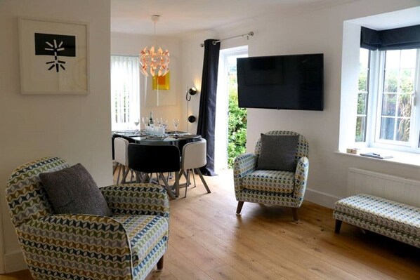 Godendo di una posizione tranquilla e nascosta nel centro dello storico villaggio di campagna di East Budleigh, nel Devon orientale, questa casa per le vacanze recentemente rinnovata offre alloggi con angolo cottura di prima classe per famiglie o gruppi fino a 4-5 persone con un'enfasi su comfort, gusto , spazio e luce. I posti a sedere all'aperto consentono di godersi il canto degli uccelli nel soleggiato giardino riparato. Seggiolone, cancelletto e lettino da viaggio di qualità possono essere forniti come richiesto (Il terzo letto singolo è un letto z mobile. Sia esso che il lettino e il seggiolone sono collocati in Jasmine come richiesto)
