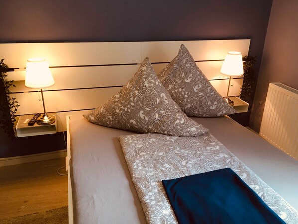 L'appartamento camera doppia recentemente ristrutturato, è situato in una casa con tre unità abitative. Essa è dotata di due letti singoli (90x200 cm), che possono anche essere collocati separatamente, se necessario. L'appartamento è dotato di un televisore, una piccola area salotto e un armadio. I rivelatori di fumo sono standard. Il bagno con doccia / WC, asciugacapelli e scaldasalviette. L'angolo cottura adiacente è dotato di: macchina per il caffè, tostapane, bollitore, forno a microonde, stoviglie, posate,