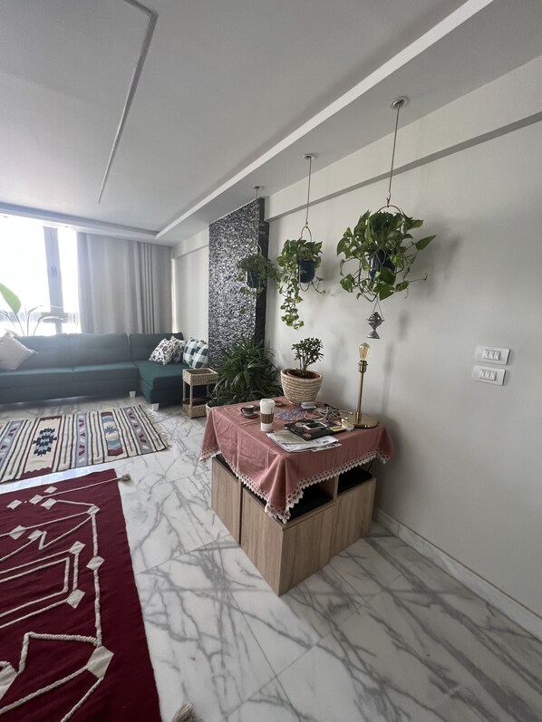 A beautifully Mixed theme between modern and traditional art decor Marble floors
