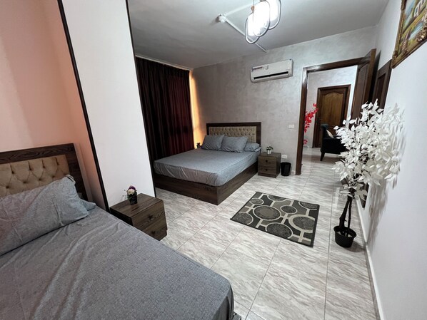 Welcome to your ideal stay in the heart of Cairo! This luxurious and fully air-conditioned apartment combines comfort, space, and a prime location with a breathtaking view of Downtown. Perfect for families or groups, the apartment accommodates up to 8 guests.