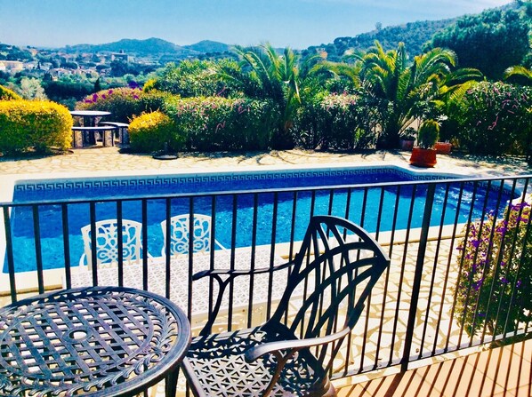 Villa Tranquila a Calonge è una grande villa dal design accattivante, completamente climatizzata, con la sua piscina privata di acqua salata / cloro da 8 metri e una qualità e un ambiente unici che lo rendono il perfetto rifugio per le vacanze. Circondato da giardini maturi, si trova nell'esclusivo Puig Rosell, con splendide viste panoramiche sul borgo medievale di Calonge, sulla catena montuosa costiera di Les Gavarres e sul Mar Mediterraneo.