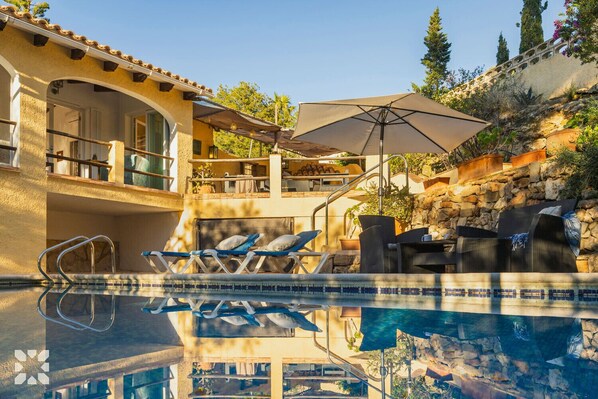 EXTERIOR: The 800 m semi-secluded grounds have ample terraces around the pool for sunbathing, lounging or dining.