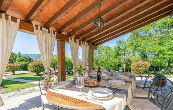 Situata in una tenuta privata recintata, questa splendida casa vacanze si trova a soli 2 km dal pittoresco villaggio di Camaiore e a 18 km dalle famose spiagge sabbiose della Versilia. La casa vacanze dispone di un ampio prato paesaggistico con una bella piscina con idromassaggio, barbecue in pietra e pergolato attrezzato per piacevoli cene all'aperto. Godetevi la posizione tranquilla e la vista panoramica sulla proprietà e sul bosco! Questo alloggio è la soluzione ideale per chi vuole trascorrere una vacanza rilassante a contatto con la natura della Toscana. Per mantenersi in forma, l'attrezzatura sportiva è disponibile nella sala del seminterrato. Si consiglia una gita sulle splendide Alpi Apuane, da cui proviene il famoso marmo bianco. Alcune distanze per attività ed escursioni: maneggio a 4 km, le bellissime spiagge di Lido di Camaiore a 9 km, campo da tennis a 9 km, campo da golf a 14 km. L'affascinante città di Lucca, con le sue mura intatte e le chiese romaniche, dista 22 km. Qui si svolgono anche grandi eventi, come il Lucca Summer Festival con concerti di artisti internazionali, e il Lucca Comics, un appuntamento imperdibile per tutti coloro che amano il genere fantasy. Vicino a Pisa (30 km), vi aspetta la bellissima Piazza dei Miracoli con il Duomo, il Battistero e la famosissima Torre Pendente. L'affascinante città di Firenze dista 95 km. Qui, nella culla del Rinascimento, dovreste visitare l'imponente Cattedrale di Santa Maria del Fiore, il vicino Campanile di Giotto, Palazzo Vecchio, la Chiesa di Santa Croce e la straordinaria Galleria degli Uffizi con i suoi capolavori! Nel prezzo sono inclusi i servizi (tre volte a settimana al mattino presto, della durata di circa due ore), sia del giardiniere per la cura del giardino che del tecnico specializzato incaricato della pulizia e del controllo dei livelli chimici della piscina. A disposizione anche una smart TV con connessione a Netflix.