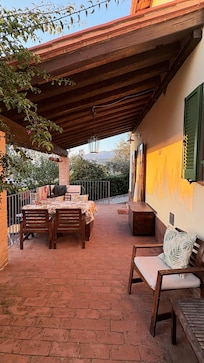 L’esperienza presso Casa Rosetta è stata estremamente piacevole. La casa è grande, le stanze di fatto sono 3, in quanto anche il salotto con divano letto è di fatto una camera a se stante con bagno al piano, noi eravamo in 4 ma anche 6 ospiti ci stanno comodamente. La cortesia di Teresa e di suo marito ci ha fatti sentire subito a casa, siamo stati accolti con una cura del dettaglio che abbiamo apprezzato molto. La dimora che gode di un panorama unico, è ricca di piante da frutto, ulivi, verde, spazi e tutti i confort per sfruttare al massimo l’aperto: le amache, la piscina, i lettini con i loro ombrelloni, la verandina e il barbecue. L’amore per gli animali di Teresa e suo marito ha permesso che anche ai nostri due cani, un bassotto e un pastore, di trascorrere un soggiorno molto piacevole.