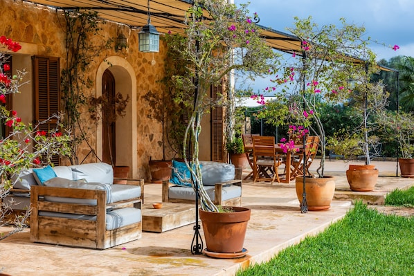 Con vista sulla montagna, la villa Son Fred Campos a Illes Balears è perfetta per una vacanza rilassante. La proprietà a 2 piani è composta da un soggiorno, una cucina, 3 camere da letto e 3 bagni e può quindi ospitare 6 persone. I servizi aggiuntivi includono Wi-Fi ad alta velocità (adatto per le videochiamate) con uno spazio di lavoro dedicato per l'home office, una TV, un ventilatore, una lavatrice, un'asciugatrice, teli da spiaggia/piscina, nonché libri e giocattoli per bambini. Inoltre, è disponibile un tavolo da ping pong per il vostro divertimento. Sono disponibili anche una culla e un seggiolone. Questo alloggio non offre: aria condizionata. Questa casa vacanza dispone di un'area esterna privata con piscina, giardino, terrazza, balcone, barbecue, parco giochi e doccia esterna.