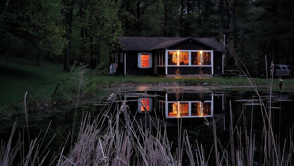 Welcome to Camp Navarac, our charming ski cabin nestled just 12 minutes from historic Canandaigua an 6 miles from the slopes of Bristol Mountain! If you're seeking a cozy retreat surrounded by nature overlooking a private 1/2 acre pond, this is the perfect spot for you. The cabin's warm and inviting atmosphere is accentuated by beautiful knotty pine interiors, creating a rustic, comfortable ambience. After a day on the slopes, unwind in the private sauna. Convenience meets seclusion, as our cabin is only a short 10-minute drive from the vibrant Canandaigua restaurant scene, providing you with the best of both worlds – easy access to local attractions and a peaceful retreat away from the hustle and bustle. Inside, you'll find a gas fireplace that adds to the cozy charm, creating the perfect setting for evenings spent recounting the day's adventures or simply enjoying the warmth and ambience. The cabin comfortably sleeps 4, making it an ideal getaway for friends or a small family. Whether you're a skiing enthusiast, a nature lover, or just looking for a tranquil escape, our cabin is your home away from home. Book your stay now and experience the magic of a Bristol Hills retreat combined with the comforts of a well-appointed cabin. Your cozy getaway awaits!