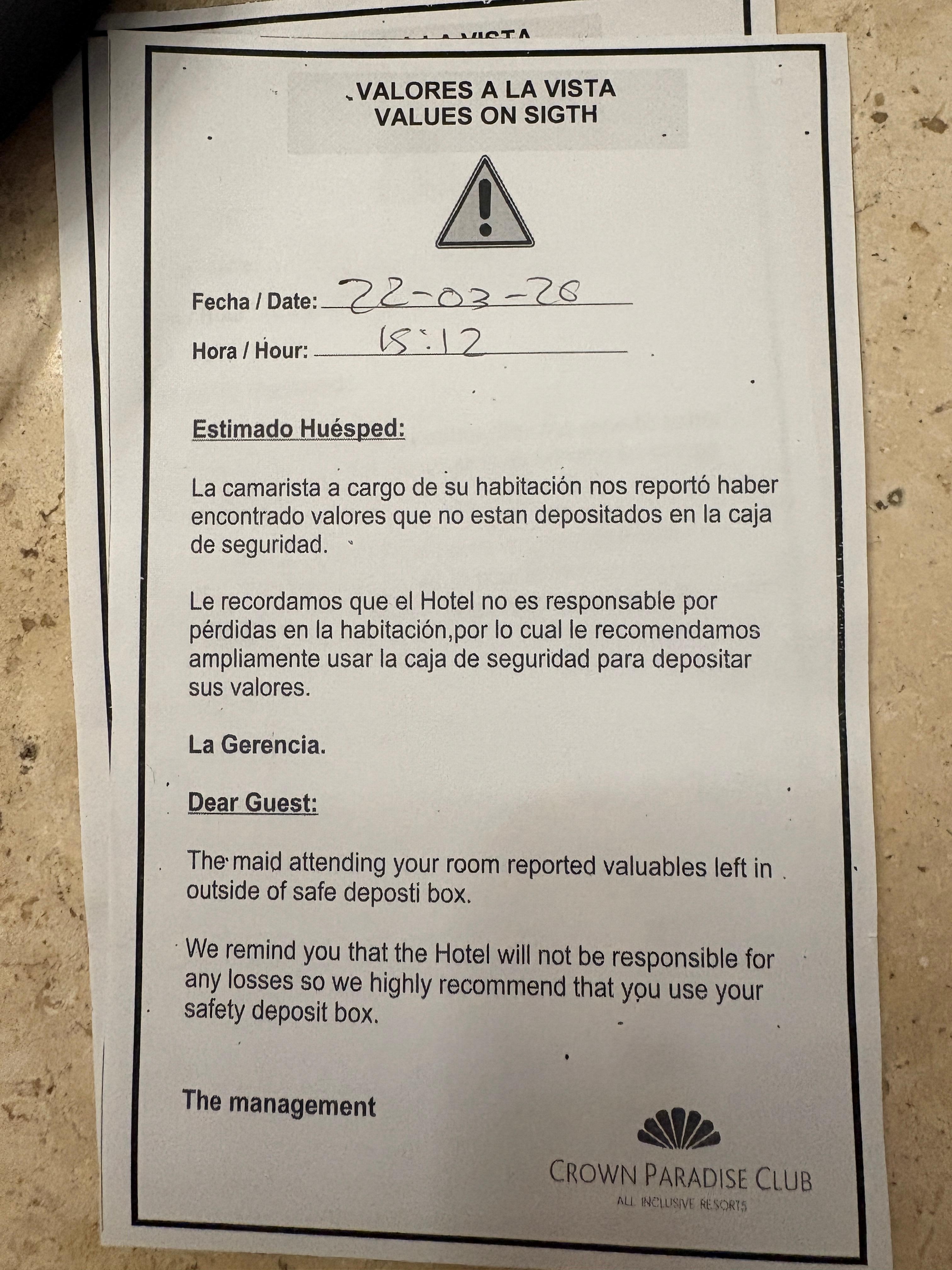 I got dress coded for the Buffett when other girls (Mexican and other ethnicity with similar if not worse or same outfits got to go in) and they made me change. People brought the Buffett plates outside the buffet and they allowed them to do it, but as soon as my family did they tried to take the plate away. (Not even joking) They never had towels available for the pool kept saying they’re washing them so we had to use our room ones, but if you lose your card for the towels it’s $25. Didn’t get clean towels for a day and again, tried calling housekeeping nothing. Got a note basically stating if our stuff went missing it was them.