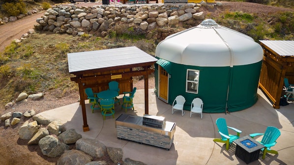 Our riverside Luxury Yurts are located 3 miles from our White Water Bar & Grill and are 10 Miles outside of the town of Cañon City.
