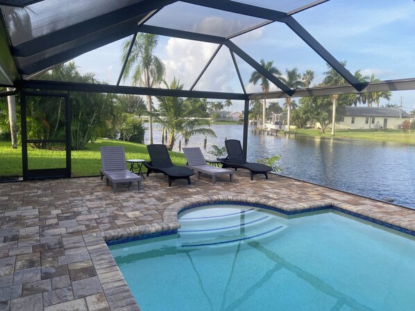 Piscina di acqua salata completamente ristrutturata a casa nel sud-ovest desiderabile. La casa è vicino al centro, ristoranti, bar e attività. Home dispone di un nuovissimo proiettato nella piscina di acqua salata. Grande lanai con splendide vedute dei canali che si intersecano con esposizione occidentale. Guarda i bellissimi tramonti sull'acqua. Home ha nuovissimi elettrodomestici in acciaio inossidabile nero, armadi (tre posti a sedere sull'isola) e ripiani in granito in tutta la casa. La casa dispone di tre camere da letto. Una grande camera da letto matrimoniale con letto king size e porte scorrevoli in vetro che escono sul patio coperto e sulla piscina. Camera da letto principale con cabina armadio, TV a schermo piatto da 43 pollici e bagno padronale. Bagno padronale con cabina doccia. Dall'altro lato della casa ci sono due camere da letto e un bagno. Il bagno ha una doccia e vasca. La seconda camera è grande con un letto matrimoniale, schermo da 43 pollici e ampio armadio. La camera da letto si affaccia sul canale e sulla piscina. La terza camera ha due letti singoli con armadio di buone dimensioni. C'è un ampio soggiorno con TV da 65 pollici. C'è una zona pranzo con porte scorrevoli in vetro che escono al lanai e piscina. La casa ha una lavanderia con lavatrice, asciugatrice e lavandino all'interno della casa. Inoltre, la casa ha tutti i pavimenti piastrellati e un garage per due auto collegato. La casa dispone di aria condizionata centralizzata, cavo gratuito, WIFI gratuito e tutte le comodità di casa.