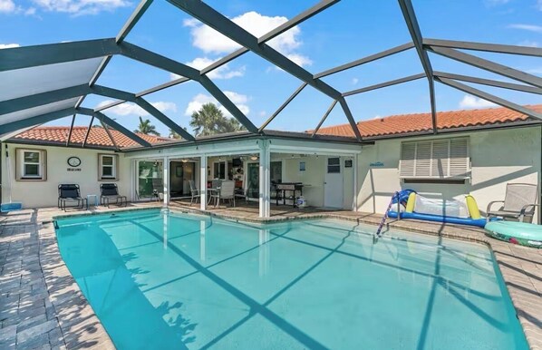 • Private screened-in pool for all-day relaxation