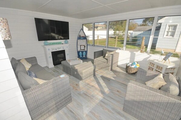 Welcome to our home in North Cape May! It is brand new to the rental market and has been lovingly updated inside and out. Relax with family and friends in our 3 bedroom 2 bathroom house that can sleep up to 8 people thanks to the brand new pull out couch. There is a fully screened in porch, grill deck and outside shower all just 3 blocks from the Delaware Bay where you can enjoy stunningly beautiful sunsets, look for the perfect shell, go for a run or walk or just relax with your toes in the sand. We want you to Bay Happy so we have all the amenities available to make your stay worry free. You will find beach chairs, umbrellas, sand toys, boogie boards, an array of kitchen appliances for homemade meals with family and a big screen smart TV in the Florida Room for when you just can t miss the game. There are 2 other smart TV s as well as two fireplaces which makes our home just perfectly cozy for those refreshingly cool fall and winter weekends. And to top it off - you will have extra room in your suitcase for more flipflops and bathing suits because we provide all sheets, blankets and towels. Our amazing cleaning service sanitizes all of our linens and makes all of the beds for each vacation stay so they are fresh and the beds are ready to be flopped into after a great day of fun! Imagine - Not having to pack the sheets or make the beds before starting your vacation. Sip wine or enjoy your coffee on the front porch and enjoy the calming bay breeze. Grill your fresh catch, burgers or steaks on the grill deck and enjoy dinner out in the enclosed back yard. At Don t Worry...Bay Happy you will enjoy central heat and air, brand new whirlpool appliances including a dishwasher as well as WiFi throughout and a driveway to park your car. And don t forget - the beaches here at the bay are free! North Cape May is the perfect location because you can have peace and quiet when you are here and historic Cape May is only a 10 minute drive and the Wildwood Boardwalk is just 15 minutes away. And everyone needs to check out the Cape May Lewis Ferry which is just down the street from our house! We have numerous fantastic restaurants right here in our little bay area including a fantastic brew pub, a phenomenal distillery, excellent Italian food, pizza, subs and of course there is WaWa and an Acme just a few minutes away in case you need to stock up. Feel free to Instacart your groceries and have them arrive when you do and you can avoid grocery shopping all together. $230 fee is applied to every reservation for cleaning and linen service, which includes bedmaking. Dont Worry...Bay Happy!