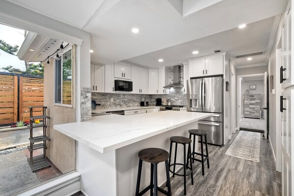 Please Note: Seabreeze is part of a duplex property that includes an additional one-bedroom unit. Guests of both units have shared access to the backyard patio, which features a dining area and fire pit. For larger groups or multi-family stays, both units can be rented together—inquire for availability and combined rates.