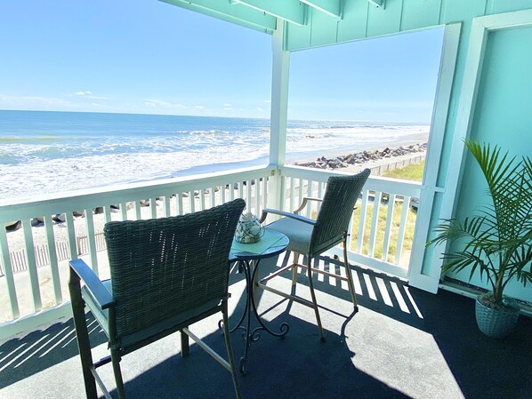 Directly oceanfront-one bedroom, one bath condominium with an oceanfront balcony that will take your breath away! There is also a sleeper sofa in the living room that turns into a full bed with memory foam mattress. Both the bedroom and the living room are ocean facing so you can enjoy the peaceful ocean view and sound of the waves.