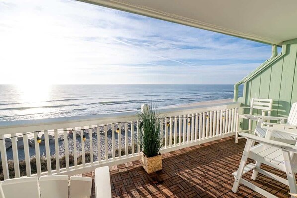 Outdoor Living: Savor breathtaking ocean views and salty breezes from the comfort of your private balcony. It's the perfect spot for sipping your morning coffee watching the sunrise or enjoying a glass of wine as you wind down from the day at the beach.